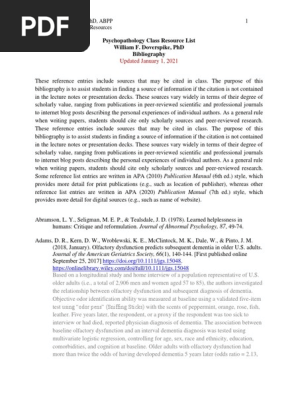 Psychopathology Class Resource List William F Doverspike Phd Bibliography Pdf Bipolar Disorder Mental Disorder