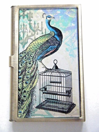 Peacock Design Glass Metal Business Credit Card Holder New In Gift Box Ebay